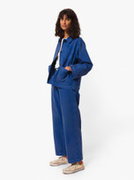 Diese Arbeitsjacke in normaler Passform bietet ein schlichtes Design mit einer Brustinnentasche und zwei Vordertaschen. Die Taschen sind sicher mit einzelnen Nähten befestigt, die kleine Dreiecke an den Taschenöffnungen bilden, was sowohl die Funktionalität als auch die Ästhetik verstärkt. Die Hauptnähte sind mit gekappten Zwillingsnadelsäumen genäht, was für eine saubere und an Arbeitskleidung orientierte Konstruktion sorgt. Von der Silhouette bis zur Herstellung ist Lovis unsere Liebeserklärung an schlichte Arbeitsjacken in Form einer einfachen und attraktiven Jacke.